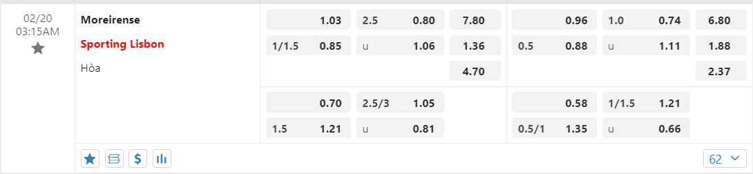 Kèo tài xỉu trong trận đấu giữa Moreirense vs Sporting Lisbon lúc 03:15 ngày 20/02/2024