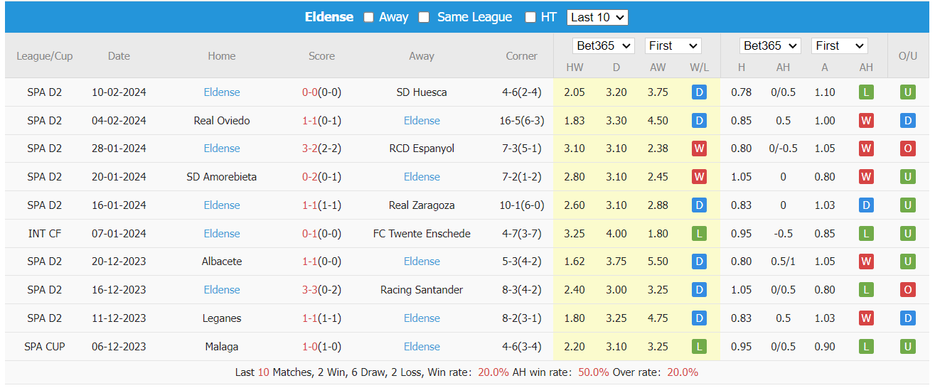 Thống kê kèo châu á CD Eldense